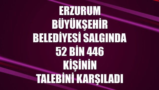Erzurum Büyükşehir Belediyesi, Erzurum'un büyükşehir sınırlarının içinde belediye işlerini yürüten kamu kuruluşudur. ADRES: Muratpaşa Mahallesi, Merkezi Yönetim Caddesi No:2, Erzurum Büyükşehir Belediye Başkanlığı, 25100 Erzurum'dur. Telefon numarası 0 (442) 344 10 00'dır. Ayrıca Erzurum Büyükşehir Belediyesi'nin haber, telefon, adres ve diğer iletişim bilgilerini de bu sayfada bulabilir, belediye birimleriyle kolayca iletişime geçebilirsiniz. Erzurum Büyükşehir Belediyesi haberleri ve son dakika gelişmelerine ait tüm haberleri listeleyin.