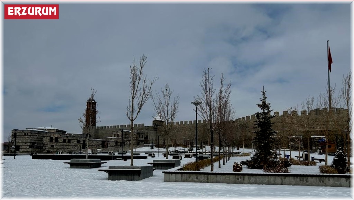 Erzurum'da uzun zamandır beklenen kar yağışı etkili olurken, tarihi alanlar ve sokaklar beyaza büründü.