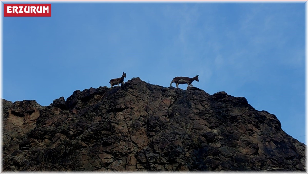 Erzurum'un Uzundere ilçesinde grup halinde gezen dağ keçileri görüntülendi.