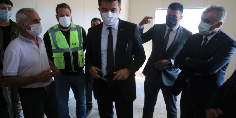 Erzurum Valisi Okay Memiş, beraberindekilerle, depremzedeler için yapılan konutların bulunduğu alana gelerek incelemede bulundu, yetkililerden çalışmalar hakkında bilgi aldı.