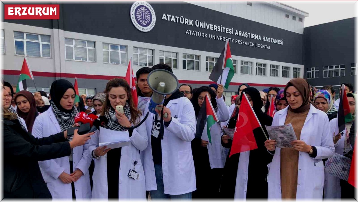 Atatürk Üniversitesi Araştırma Hastanesi'nde görevli doktorlar Gazze'de öldürülen sağlık görevlileri için basın açıklaması yaptı.