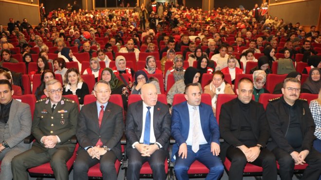 Erzurum Valiliği himayesinde, Aile ve Sosyal Hizmetler İl Müdürlüğü ve Erzurum Büyükşehir Belediyesi işbirliğiyle İbrahim Erkal Dadaş Kültür ve Sanat Merkezi'nde düzenlenen program, işitme engellilerin İstiklal Marşı'nı işaret diliyle okumasıyla başladı.