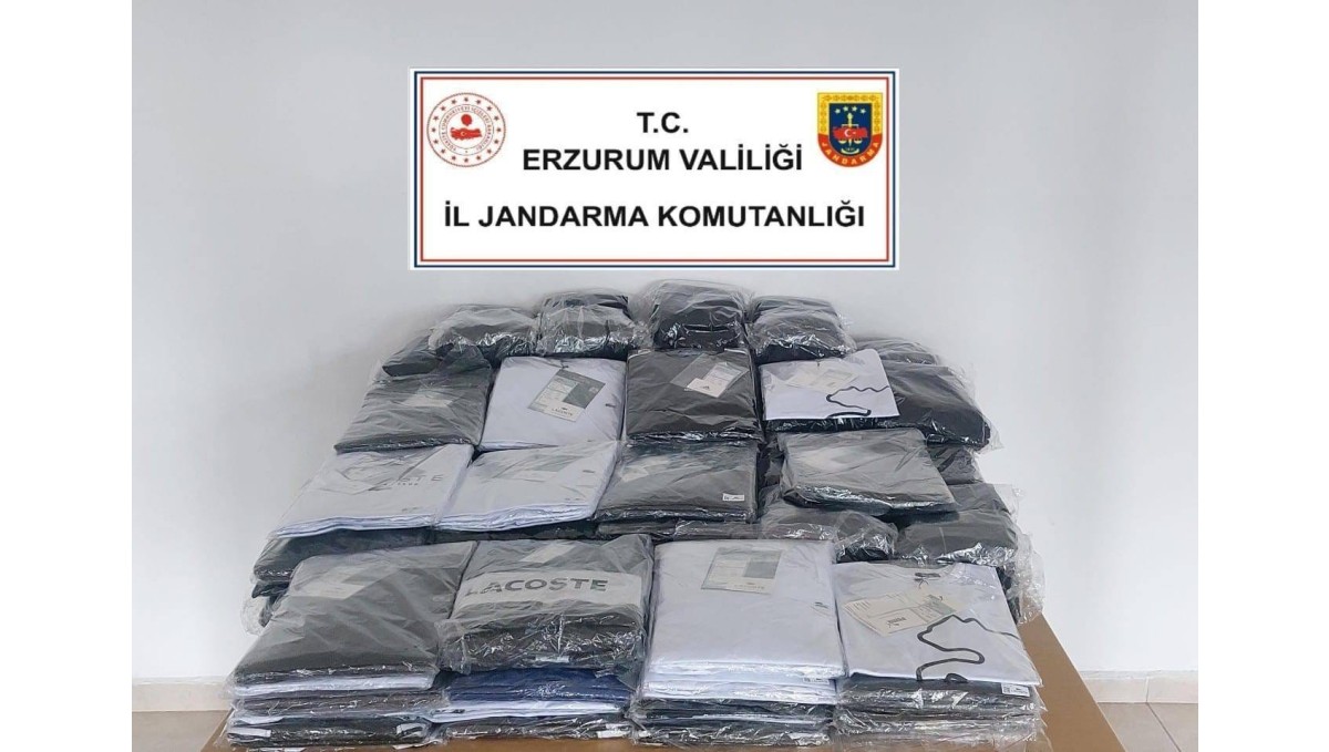 Jandarma ekipleri Erzurum'da piyasa değeri 1 milyon 150 bin olan 374 tişört ele geçirdi.