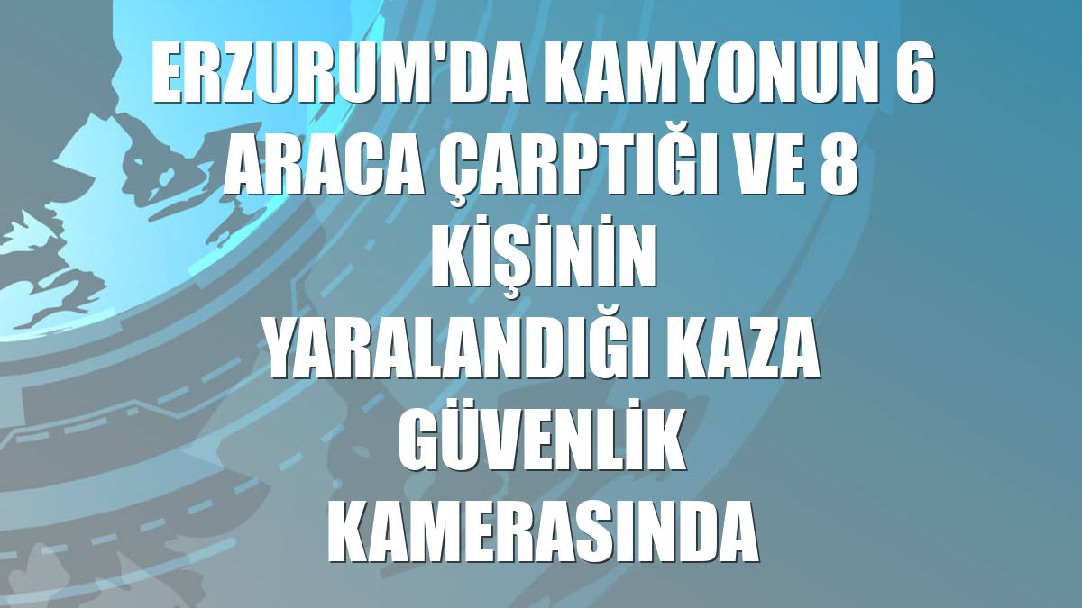 Erzurum (AA) - Erzurum'da iki gün önce kargo firmasına ait kamyonun 6 araca çarpması sonucu biri ağır 8 kişinin yaralandığı kaza anı güvenlik kamerasınca kaydedildi.