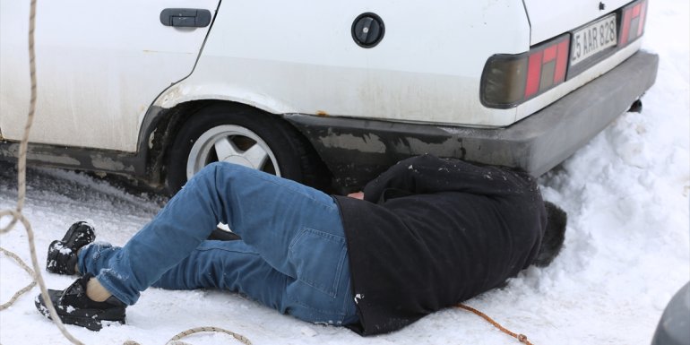 Şenkaya ilçesinde de köylerine gitmek isteyen ancak fırtına nedeniyle kara saplanan vatandaşların aracı, halat ve çekici yardımıyla kurtarıldı.