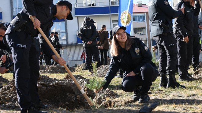Erzurum - Erzurum Emniyet Müdürlüğünde görev yapan polis memurları, anaokulu öğrencileriyle 550 fidanı toprakla buluşturdu.