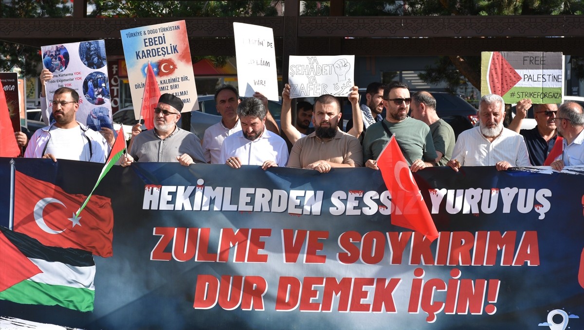 Erzurum (AA) - Erzurum'da hekimler ve sağlık çalışanları, İsrail'in Gazze'ye yönelik saldırılarını protesto etmek ve zulmüne dikkati çekmek amacıyla 87 haftadır sessiz yürüyüş gerçekleştiriyor.