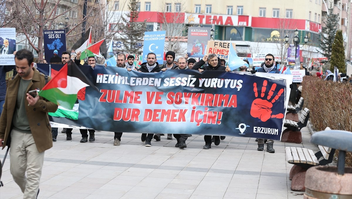 Erzurum (AA) - Erzurum'da vatandaşlar, İsrail'in Gazze'ye yönelik saldırılarını protesto etmek ve zulme dikkati çekmek amacıyla yürüyüş gerçekleştirdi.