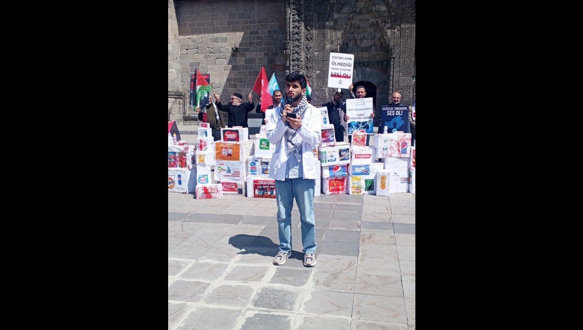 Burada İsrail menşeli markaların isimlerinin yer aldığı kutularla boykot çağrısında bulunan katılımcılar adına açıklama yapan Atatürk Üniversitesi Tıp Fakültesi öğrencisi Yusuf Çiftçi, İsrail'in Gazze'ye yönelik saldırılarını unutturmamak için toplandıklarını söyledi.