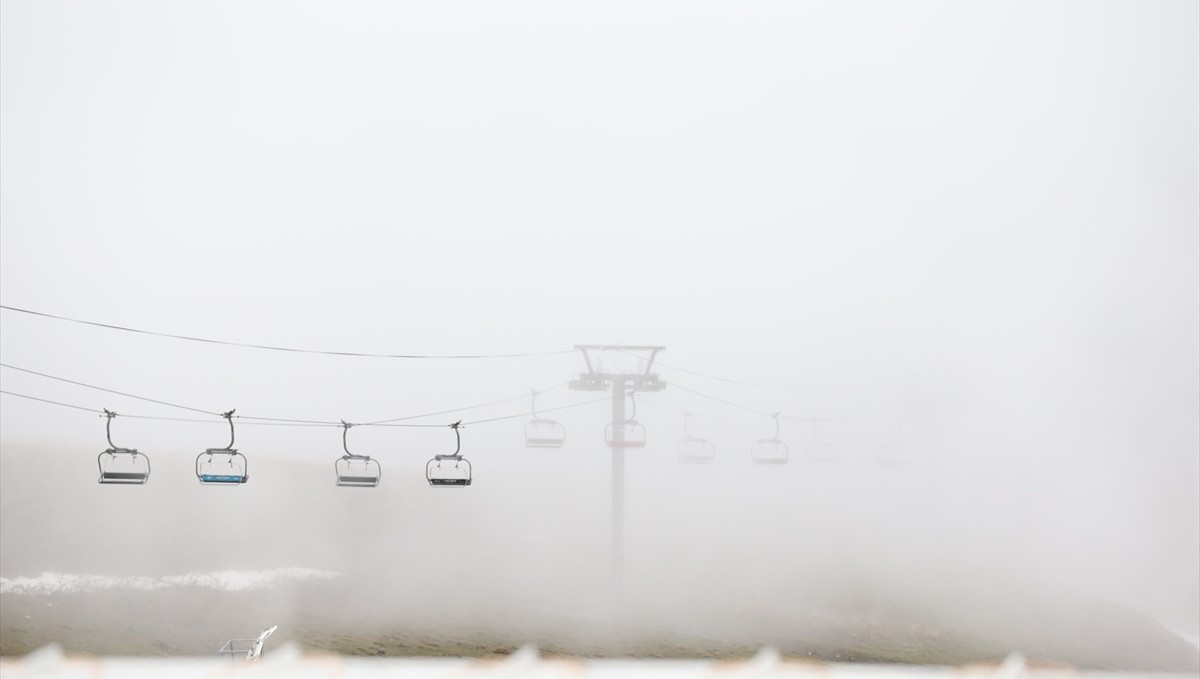 Zirvesi karla kaplı Palandöken Dağı'nda da sis etkili oldu.