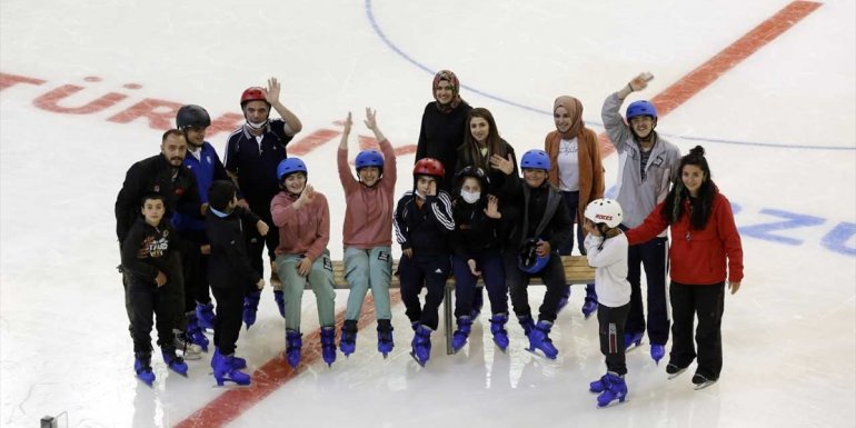 Erzurum - Erzurum'da zihinsel engelli, down sendromlu ve otizmli çocuklar, Büyükşehir Belediyesinin açtığı kursla buz pateni eğitimi alıyor.