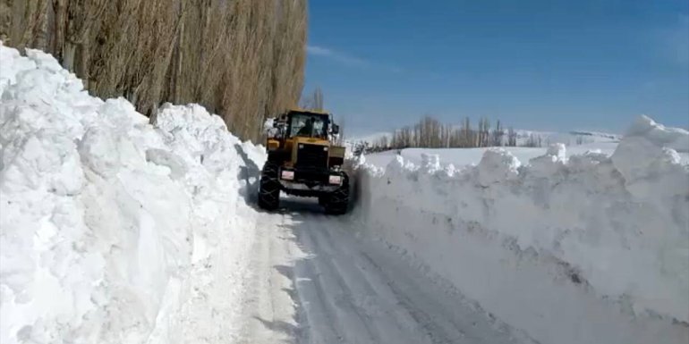 Kars'ın Kağızman ilçesine bağlı Camuşlu köyüne ulaşmak için kar kalınlığının 3 metreye bulduğu yolda İlçe Özel İdaresi ekipleri çalışmasını sürdürüyor.