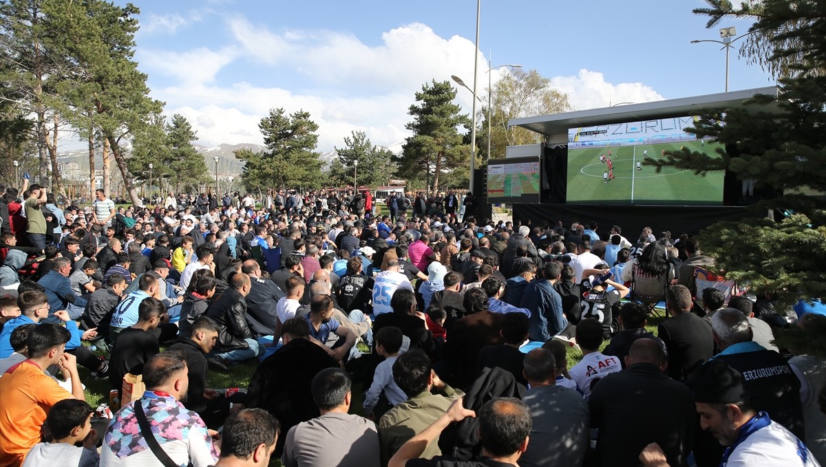 Erzurum (AA) - Trendyol 1. Lig'in 35. haftasında evindeki Uğur Okulları İstanbulspor karşılaşmasında yaşanan saha olayları nedeniyle 2 maç seyircisiz oynama cezası alan Erzurumspor FK'de taraftarlar, takımlarının Central Hospital Ümraniyespor ile yaptığı müsabakayı dev ekrandan hep birlikte izledi.