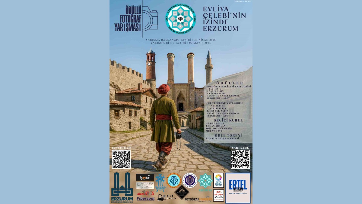 Atatürk Üniversitesi Sanat Tarihi Kulübü, Erzurum'un tarihî ve kültürel mirasını öğrenciler aracılığıyla görünür kılmak amacıyla "Evliya Çelebi'nin İzinde Erzurum" temalı bir fotoğraf yarışması düzenliyor.