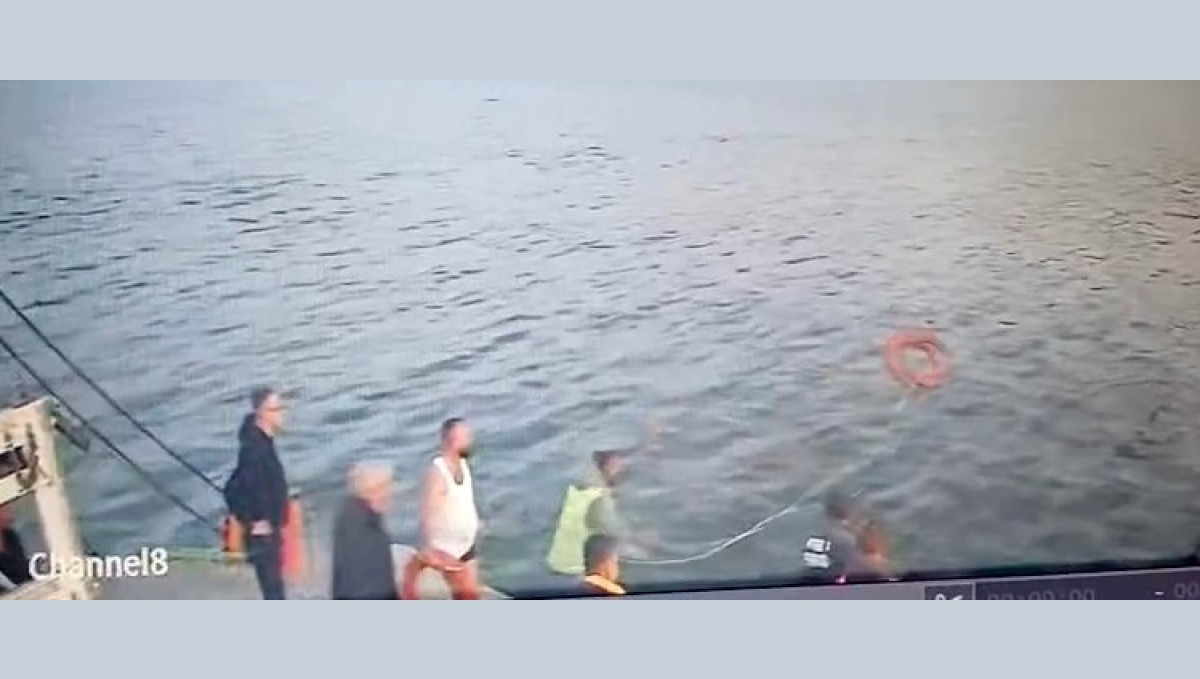 Kurtarma anı ise güvenlik kamerasına anbean yansıdı.