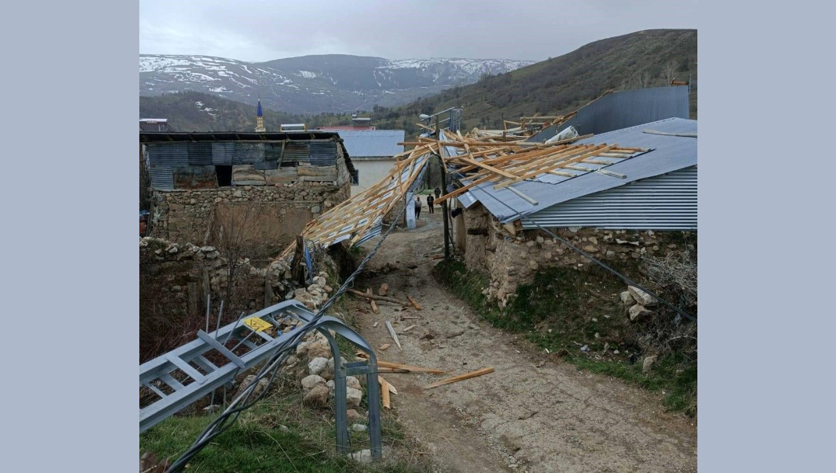 Erzincan'ın Refahiye ilçesinde etkili olan fırtına nedeniyle Şahaloğlu köyünde evlerin çatıları uçtu, enerji nakil hatlarında tahribat meydana geldi.