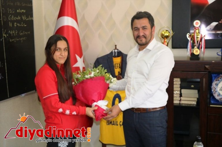 Şampiyon takımın başarılı sporcusu Çelik, Ağrı Gençlik ve Spor İl Müdürü İsmail Çalgan ile Spor Şube Müdürü Cemil Budak tarafından çiçeklerle karşılandı.