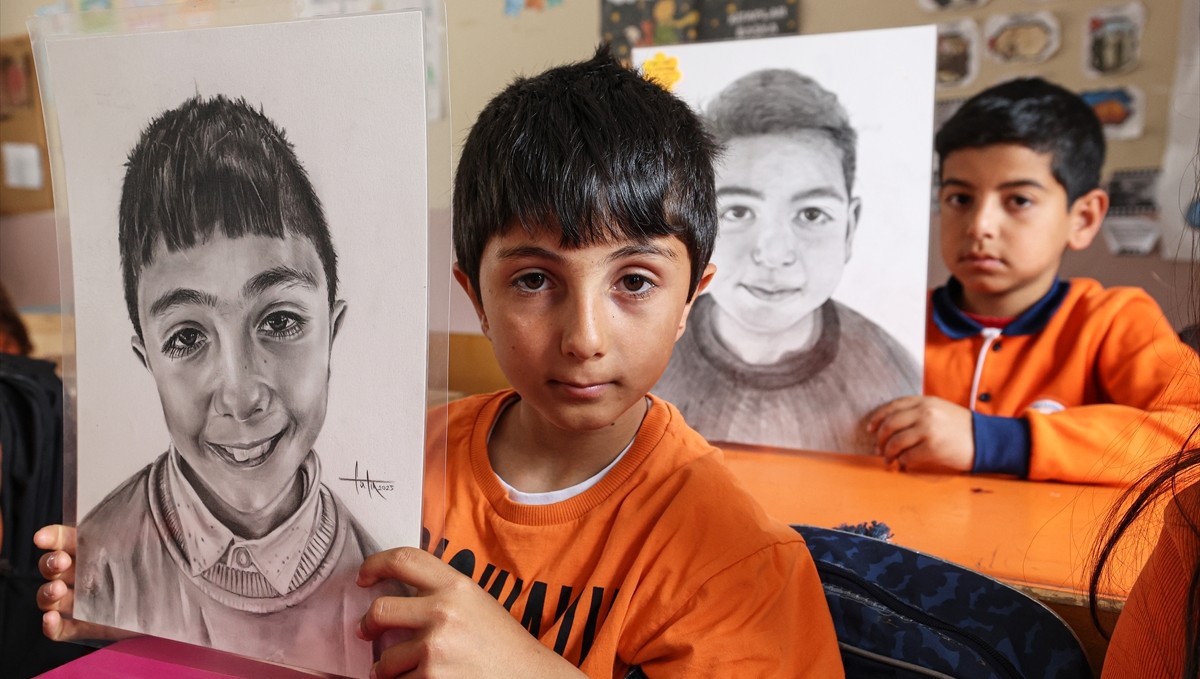 SİVAS (AA) - AYHAN İŞCEN - Türkiye'nin çeşitli illerinden bir araya gelen gönüllü ressamlar, Sivas'ın Gürün ilçesindeki bir köy okulunda eğitim gören öğrencilerin karakalem portrelerini çizerek sürpriz yaptı.