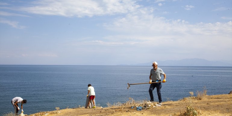 Van Gölü'nün temizlenmesi konusunda farkındalık oluşturmak isteyen dernek üyeleri, "Van Gölü Temiz Kalsın" sloganıyla sahil kısımlarında 100 kişilik gönüllü ekiple çöp topladı.