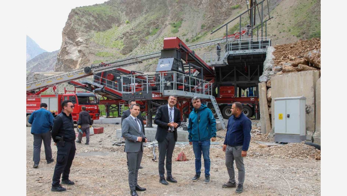 Hakkari-Çukurca karayolu üzerinde 150 ton agrega üretim kapasitesine sahip olacak mobil konkasör tesisi kuruluyor.