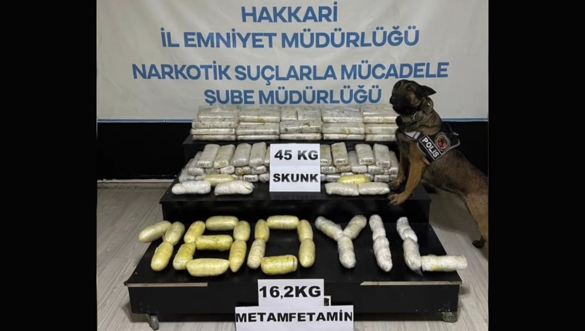 HAKKARİ (İHA) - Hakkari Valiliği'nden yapılan açıklamada, "İl Emniyet Müdürlüğümüz görevlilerince uyuşturucu madde İmal ve ticaretini önlemek amacıyla yapılan çalışmalarda; 7 Nisan 2025 günü Yüksekova İlçesi Efeler Uygulama noktasında durumundan şüphelenilen bir çekici ve dorsesinde arama yapıldı. Yapılan adli aramada; aracın dorsesi içerisinde 5 adet çuval içerisinde paketlenmiş vaziyette 30 paket halinde toplamda daralı ağırlığı 16 kilo 2 gram gelen metamfetamin maddesi ve 95 paket halinde toplamda daralı ağırlığı 45 kilogram gelen skunk maddesi olmak üzere toplamda 61 kilo 2 gram uyuşturucu madde ele geçirilmiştir. Bahse konu aracın sürücüsü olan şüpheli şahıs sevk edildiği adli mercilerce tutuklanarak Hakkari Kapalı Ceza İnfaz Kurumuna teslim edildi" denildi.