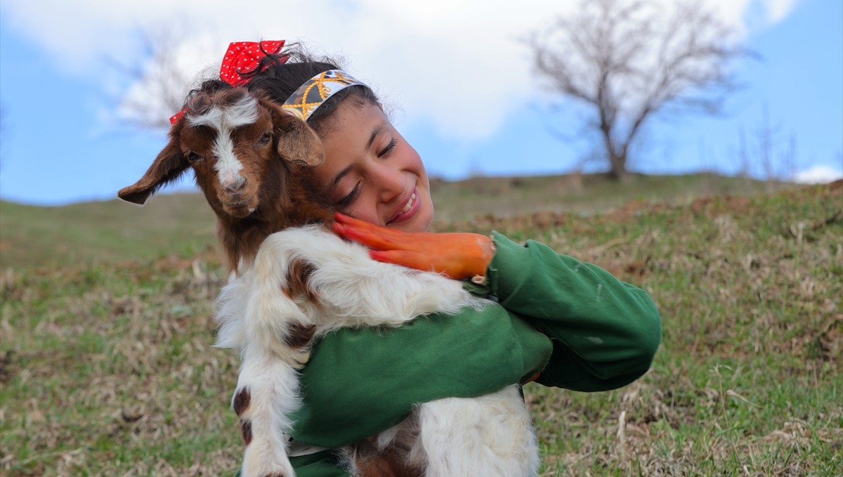 Kuzu ve oğlaklarla zaman geçiren Nehir Üzüm de "Babamla koyun ve keçilere bakıyoruz. Anneme ev işlerinde yardımcı oluyorum. Kuzuları otlatmaya götürüyoruz. Kuzularımız çok sevimli. Ablamla kuzuları kucaklayarak sevdik." diye konuştu.