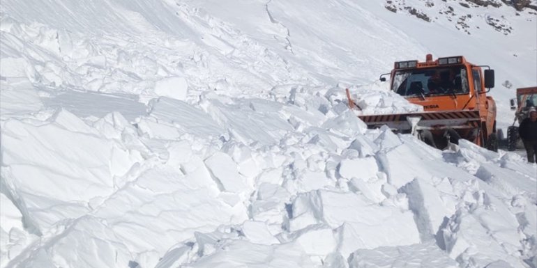 Karayolları 117. Şube Şefliği ekiplerinin karla mücadele çalışması yürüttüğü Yüksekova-Şemdinli kara yolunun Haruna Geçidi yakınına çığ düştü.