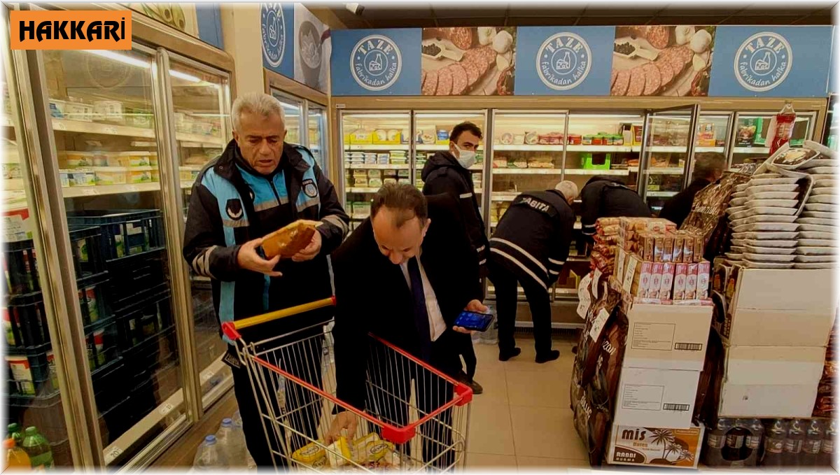 Hakkâri - Hakkâri'de son günlerde etiket kurallarına uymayan birçok iş yerine ceza kesen zabıta ekipleri, halk sağlığını ön planda tutarak denetimlerini aralıksız sürdürüyor. Hakkâri Belediyesi Zabıta Müdürü Adil Demir ve beraberindeki ekiplerin zincir marketlerde yaptıkları denetimlerde, iki ayrı markette tarihi geçmiş ürün tespit edildi. Ürünleri raflarda toplayan zabıta ekipleri, kent dışına çıkartarak imha etti.