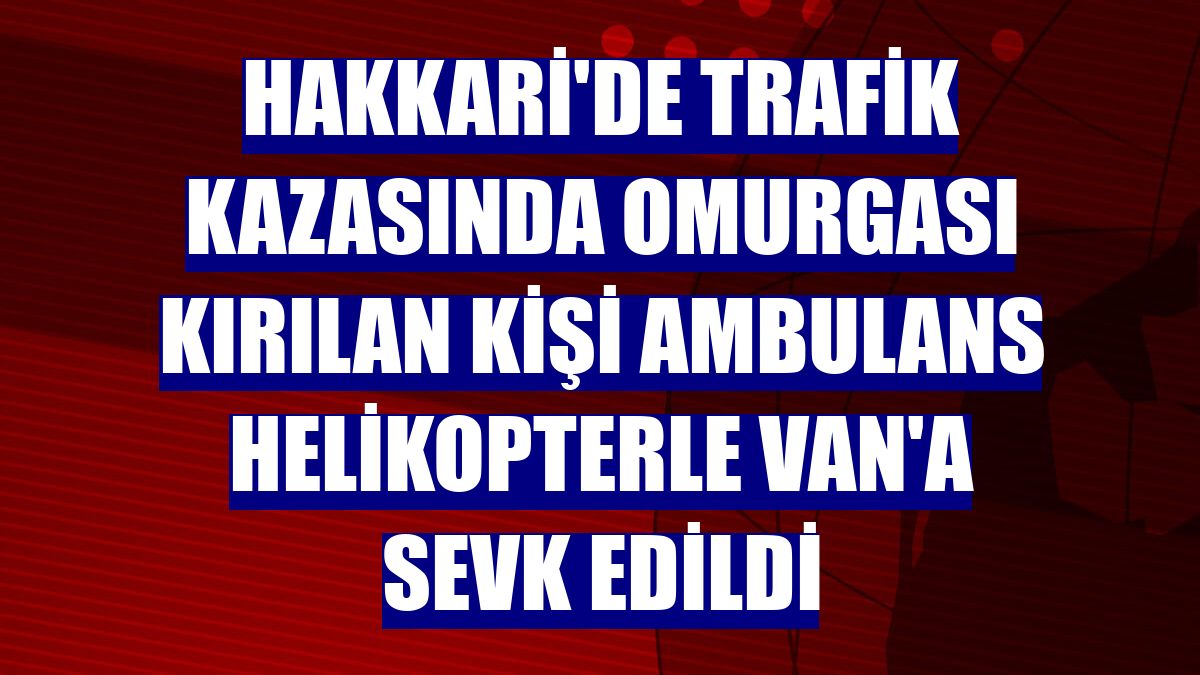Hakkâri - Hakkari'nin Yüksekova ilçesinde yaşanan trafik kazasında omurgası kırılan kişi, ambulans helikopterle Van'a gönderildi.