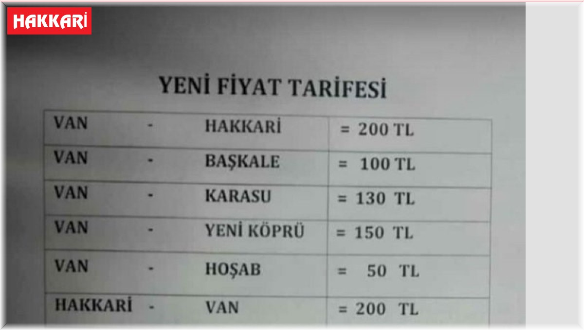 Hakkari-Van arasında 130 TL olan yolcu ücreti 200 TL'ye çıkartıldı.