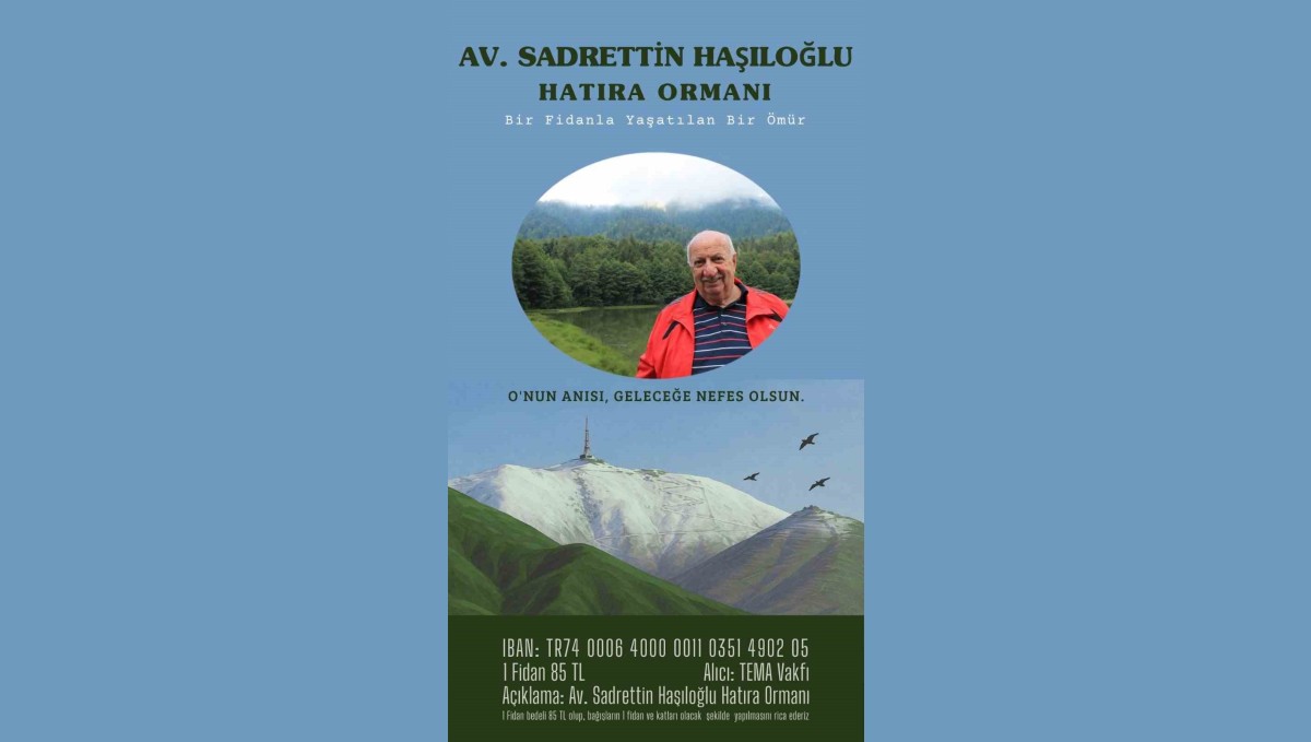 "Babamın Türkiye'nin dört bir yanındaki sevenleri ve dostlarımız, Av. Sadrettin Haşıloğlu Hatıra Ormanı'nda bizim de ağaçlarımız olsun diyerek fidan bağışlarında bulundu. TEMA Vakfı bu konuda bize 30 gün süre vermiş olmasına rağmen biz hedefimize çok daha kısa süre içerisinde ulaştık. Yıl sonunda yapılacak olan fidan dikimi ve sonrasında Av. Sadrettin Haşıloğlu Hatıra Ormanı'nda tüm sevenleriyle buluşmayı ümit ediyoruz. Ailem adına tüm sevenlerine sonsuz teşekkür ediyorum."