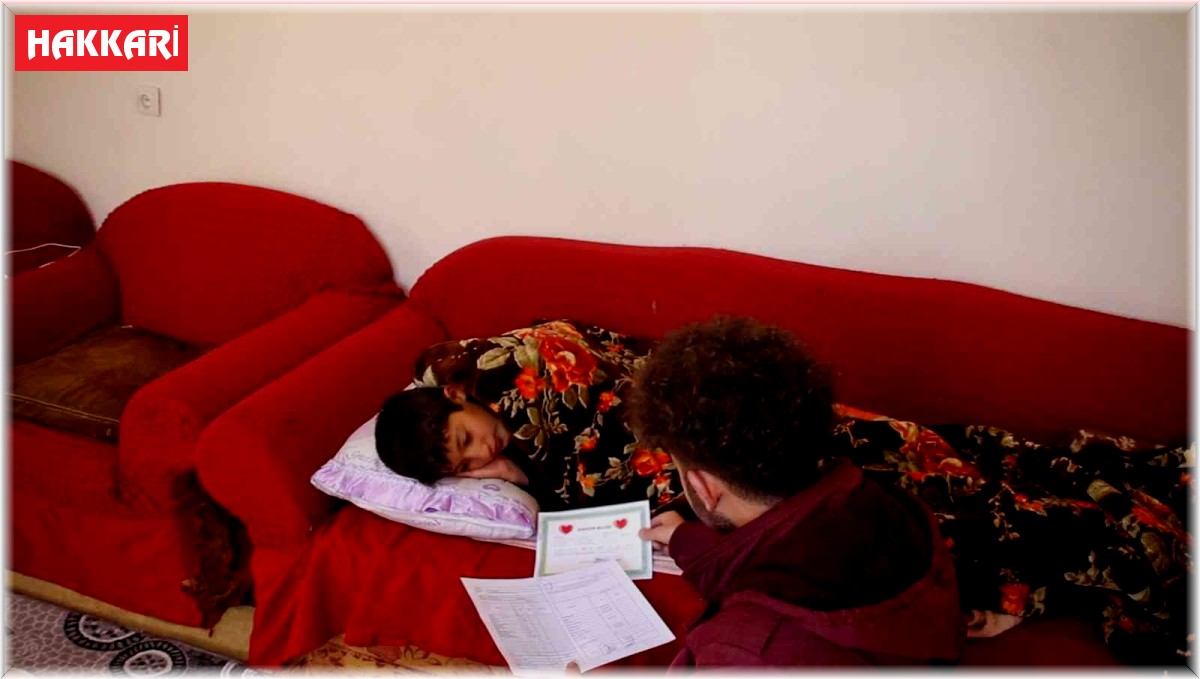 Hakkâri'nin Yüksekova ilçesi Armutdüzü İlkokulu Müdür Yardımcısı Ümit Bartın, rahatsızlığı nedeni ile okula gelemeyen 5'nci sınıf öğrencisi Tufan Ali Dilbilir'e sürpriz yaparak karnesini evinde verdi.