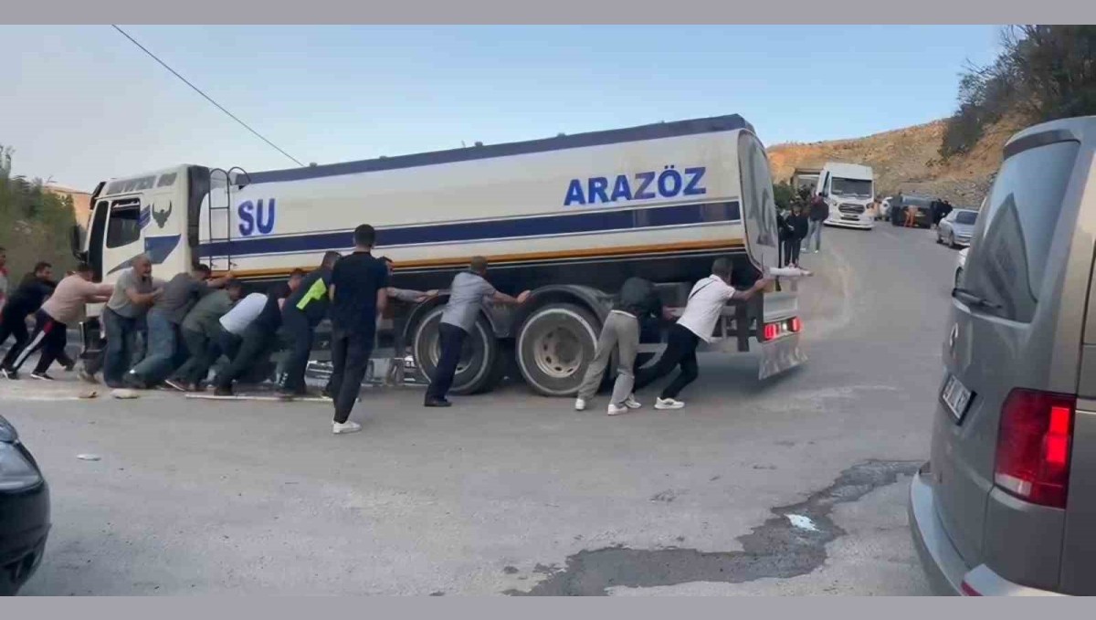 MALATYA (İHA) - Olay, Darende'nin önemli turistik noktalarından biri olan Günpınar Şelalesi yakınlarında meydana geldi. Şelale çevresinde hatalı şekilde park edilen araçlar, bölgede dönüş yapmaya çalışan bir arazözün ilerlemesini engelledi. Araç sıkışan trafikte hareket edemez hale gelirken, durumu fark eden vatandaşlar arazözü iterek bulunduğu yerden çıkardı.