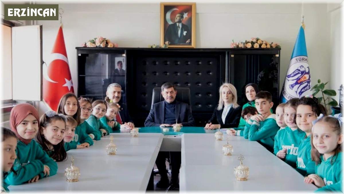 Demirkent TOKİ İlkokulu 3/A sınıfı öğrencileri, Belediye Başkanı Bekir Aksun'u ziyaret ederek geliri depremzedelere ulaştırılacak olan kitabın imza günü programının davetiyesini verdiler.