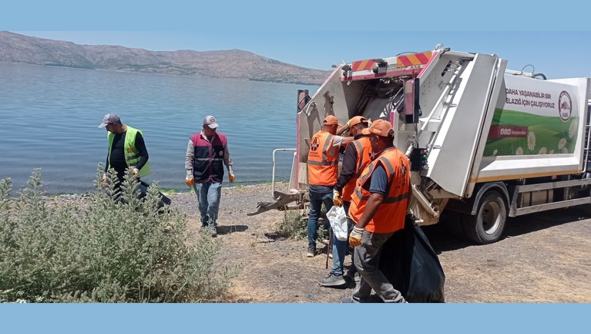 Elazığ'ın Sivrice ilçesinde bulunan Hazar gölü etrafında 40 tona yakın atık malzeme toplandı.