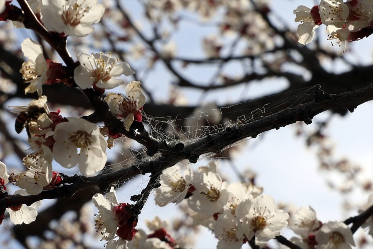 Iğdır (AA) - Iğdır'da ağaçların çiçek açtığı kayısı bahçeleri, beyaz örtüyle kaplandı.