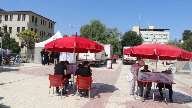 Türk Kızılayı kan bağışı çadırında akşama kadar sürecek kampanya için çok sayıda kişi sıraya girdi.