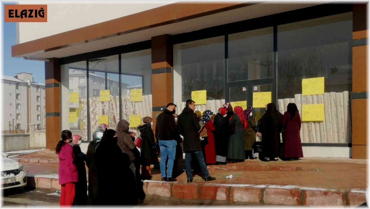 Elazığ'da bir iş yerinin halılarda indirime gittiğini duyan vatandaşlar, sabahın erken saatlerinde eksi 4 derece soğuğa rağmen mağazaya akın etti.