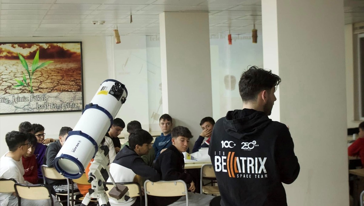 Uzay takımı öğrencileri, 9,10 ve 11. sınıf öğrencilerine teknik çizim, elektronik, mekanik, yapay zeka, robotik kodlama ve uzay gözlem eğitimi verdi.