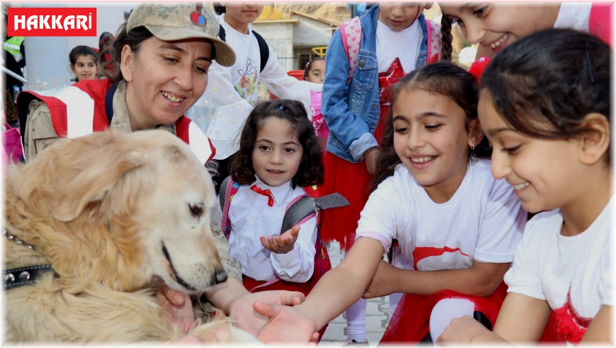 Hakkâri - Hakkari İl Jandarma Komutanlığında görevli kadın personeller, beraberindeki 'Boyut' isimli köpekle Bay Köyü İlkokulu'nda eğitim gören öğrencilere sürpriz yaptı. Öğrencilere çeşitli eğitim materyalleri hediye eden jandarma personeli ile öğrenciler arasındaki diyaloglar renkli görüntülere sahne oldu.