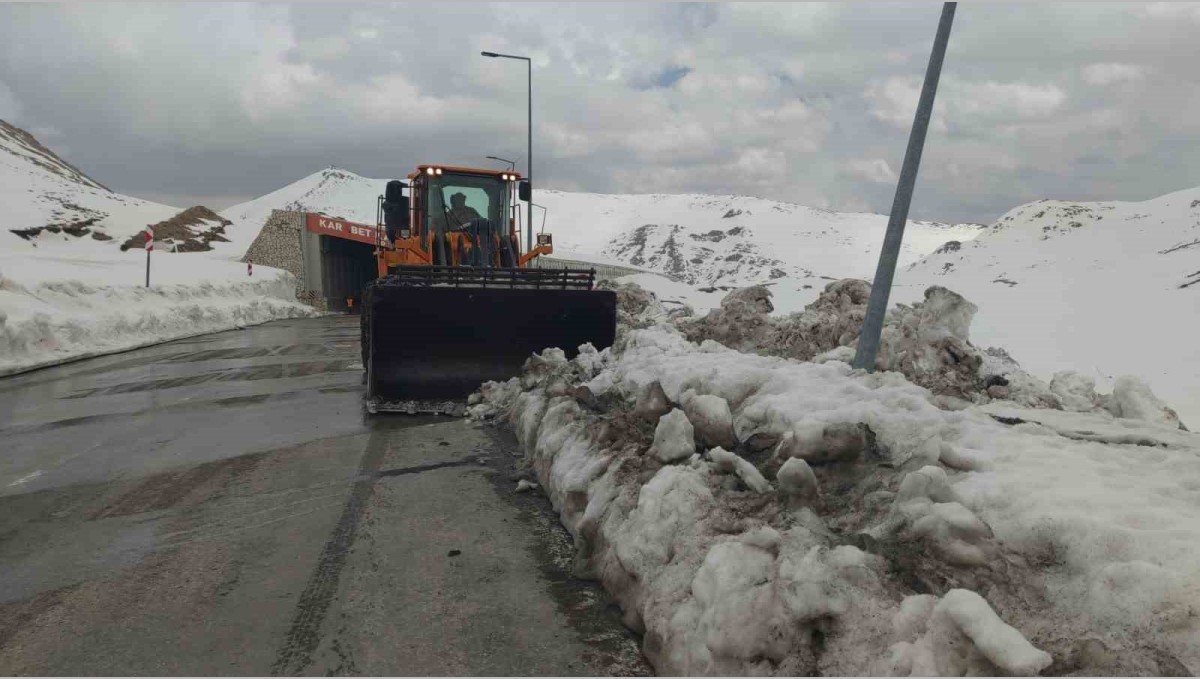 VAN (İHA) - Kışın çetin geçtiği Van'ın Bahçesaray ilçesinde hayatı olumsuz yönde etkilerken, 3 bin rakımlı Karabet Geçidi ise çığ ve olumsuz hava şartlarından dolayı aylarca kapalı tutuluyor. Karayolları 11. Bölge Müdürlüğü 111. Şube Şefliği'ne bağlı Görentaş Şantiye'sinde görevli ekipler, kış mevsimin büyük bölümünde çığ tehlikesi ve olumsuz hava şartları nedeniyle ulaşıma kapatılan Van-Bahçesaray kara yolunu açmak için büyük uğraş veriyor. Birçok çığ yatağının bulunduğu bölgede yapılan çalışmalar sonucu yolu geçtiğimiz hafta ulaşıma açan ekipler, yol genişletme çalışmalarını da tamamladı. Ekipler yolda genişletme çalışmalarını tamamladıktan sonra yoğun tipi ve fırtınadan dolayı 3 bin rakımlı Karabet Geçidinin zirvesinde bulunan kar tüneline biriken kar, gündüz sıcak, gece soğuk olmasından dolayı tünel içlerindeki kar kütleleri buza dönüşerek tehlike arz ediyor. Bunun üzerine ekipler, muhtemel bir kazanın önüne geçmek için tünel içerisindeki buz kütlelerini temizleyip tuzlama işlemi yapıyor.