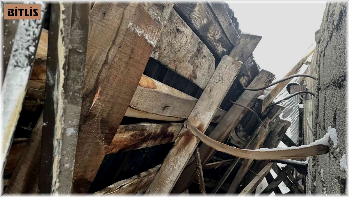 Bitlis: Tatvan ilçesinde yaklaşık 15 gündür aralıksız etkisini sürdüren kar yağışı hayatı olumsuz yönde etkiliyor. Agit Arslan'a ait tel örgü üretim tesisi ve depo olarak kullanılan iş yerinin çatısı da yağan karın ağırlığına dayanamayarak çöktü. İş yerinde maddi zarar meydana gelirken yaralanan olmadı.