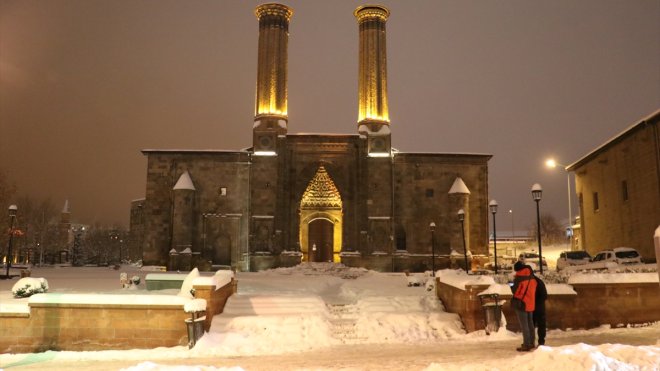 İl merkezindeki tarihi Çifte Minareli Medrese, Erzurum Kalesi ve Atatürk Üniversitesi kampüsü de beyaz örtüyle kaplandı.