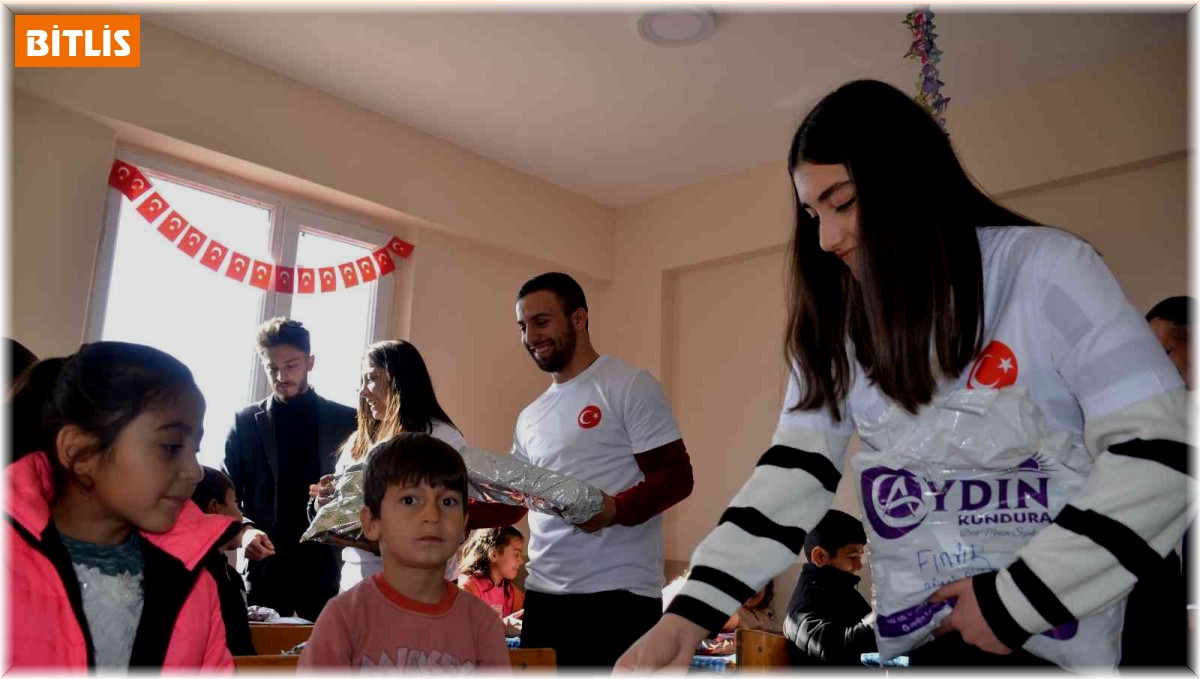Zonguldak Karadeniz Ereğli Yurt Müdürlüğü tarafından Bitlis'in Mutki ilçesi Çatalsöğüt köyünde eğitim gören öğrencilere karne hediyesi verildi.