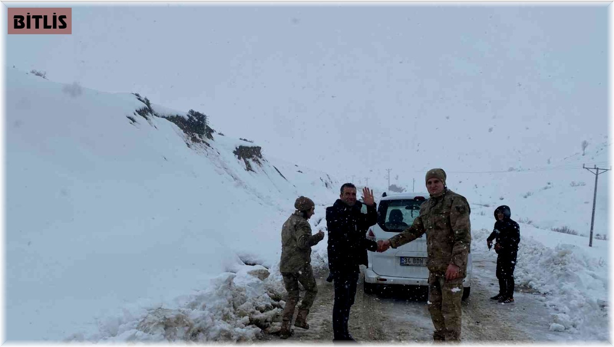 Bitlis: Bitlis Valiliğinden yapılan açıklamada, "Bitlis il merkeze bağlı Kömüryakan köyünde ikamet eden Şevket İletmiş isimli vatandaş rahatsızlanan eşini Bitlis Devlet Hastanesine götürmek için özel aracı ile yola çıktığı esnada olumsuz hava şartları ve yoğun kar yağışı nedeniyle Kömüryakan-Konuksayar köyleri arasında mahsur kaldı. Mahsur kalan vatandaşın Bitlis İl Jandarma Komutanlığı unsurlarından yardım talebinde bulunması üzerine, görevlendirilen devriye ve İl Özel idaresi ekipleri tarafından kurtarılarak hastaneye ulaşmaları sağlanmıştır" denildi.