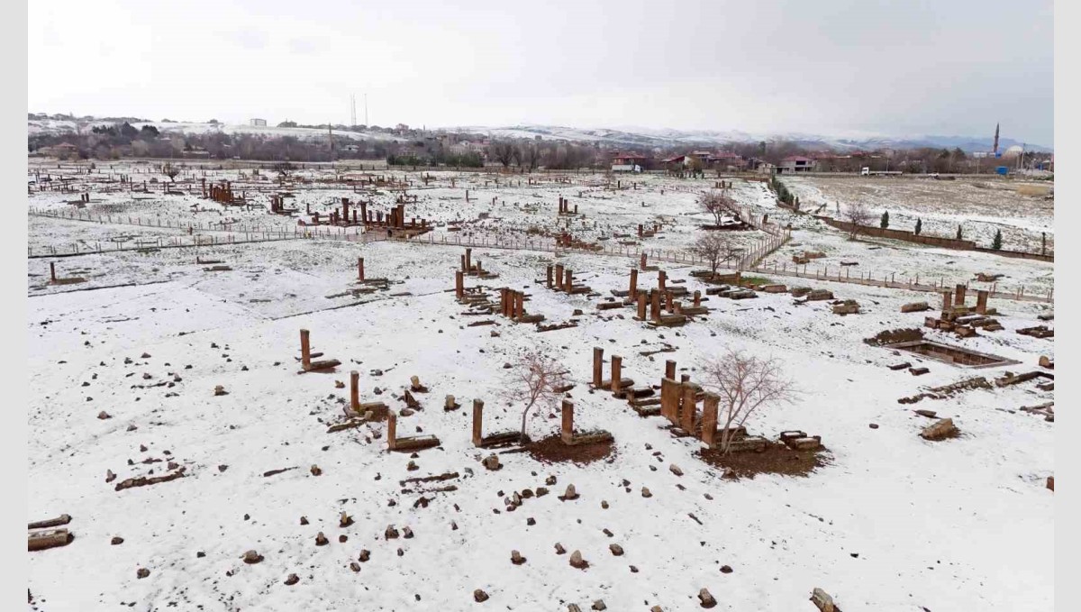 Havadan çekilen drone görüntüsünde 210 dönümde kurulu Ahlat Selçuklu Meydan Mezarlığındaki mezar taşları beyaz kar örtüsüyle hayranlık uyandırdı. Kuş bakışı çekilen görüntüde tarihi mezarlığın ihtişamı göz önüne serilirken kahverengi mezar taşları ve beyaz kar örtüsü seyri güzel görüntüler oluşturdu.