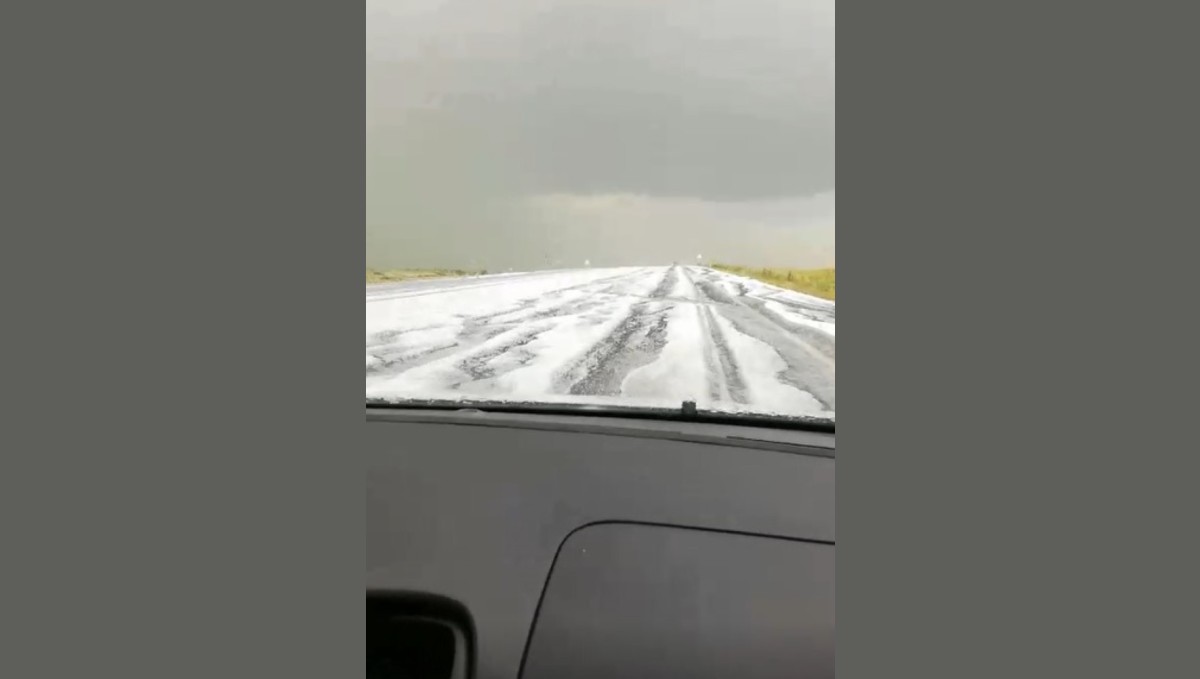 Kars'ta etkili olan dolu yağışı Kars-Selim karayolunu beyaza bürüdü. O anlar bir sürücünün cep telefonu kamerasına yansıdı.