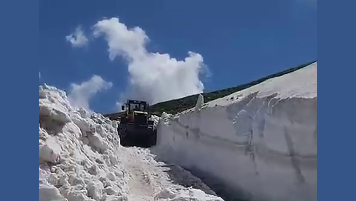 Türkiye'nin önemli bir kısmında yazın kavurucu günler yüzünü göstermeye devam ederken, Kars'ın yüksek kesimlerinde ekiplerin hala karla mücadele çalışmaları yapılıyor.
