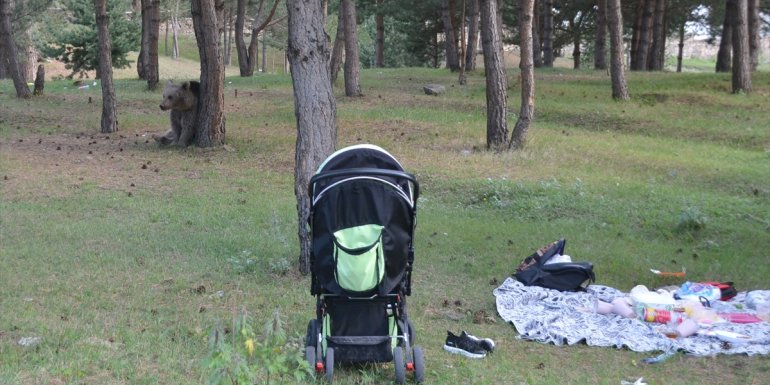 "Biz arkadaşlarla oturuyorduk, bozayı yanımızdan geçti, seslendik bize dönüp baktı. Sonra burada bulunan başka ailelere 'ayı geliyor' diye seslendik onlar da çocuklarını alıp gitti. Daha sonra bozayı onların sofralarında karnını doyurdu. Şimdi ise bir yere gitmiyor bizi izliyor.Kaynak:AA