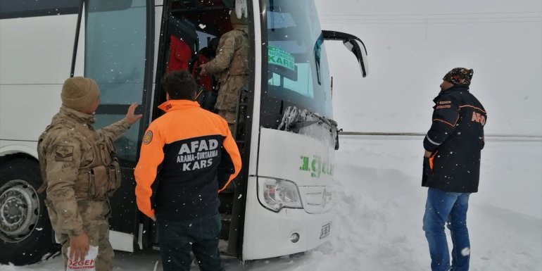 Kars - Kars'ta kara saplanan otobüsteki 20 yolcu ekiplerce tahliye edildi.